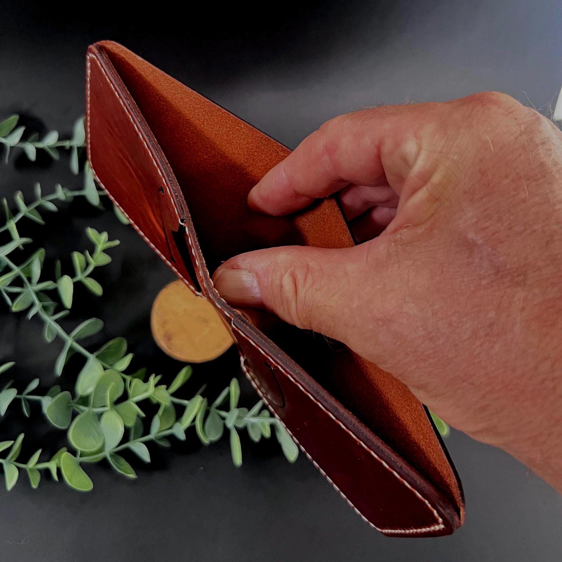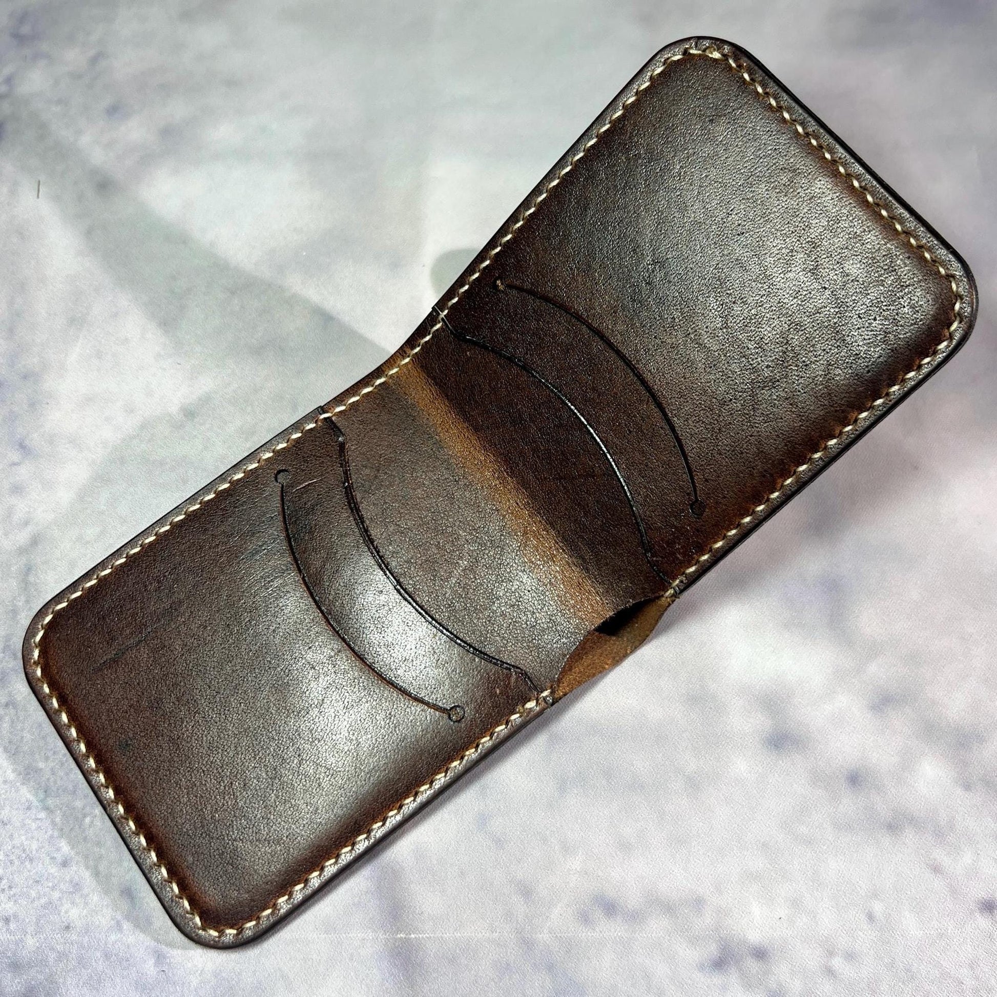 Discover our high-quality handmade Horween leather bifold wallet, crafted with precision. This luxurious wallet combines durability with a timeless design, perfect for anyone seeking style and functionality. Each wallet is meticulously handcrafted, ensuring unique character and superior craftsmanship. This rich pull up texture leather will age beautifully, making it an ideal choice for daily use.